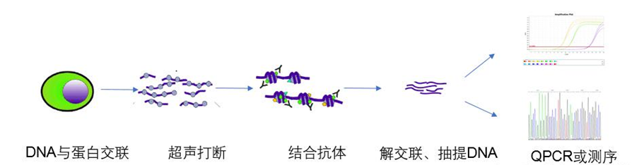 ●實驗步驟:定量檢測目標(biāo)DNA片段的富集程度。高通量測序分析全基因組范圍內(nèi)的蛋白質(zhì)結(jié)合位點。