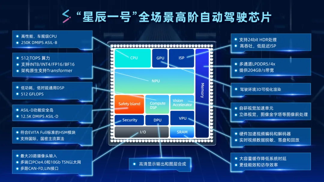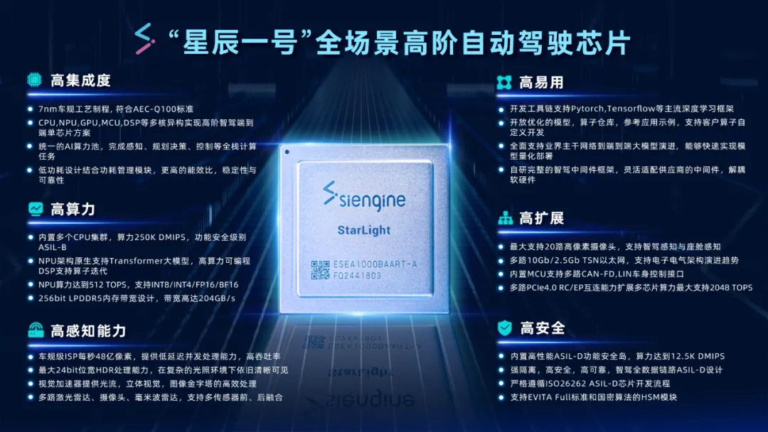 更重要的是,“星辰一號”高性能的NPU架構原生支持Transformer大模型,完全適配智能駕駛向端到端大模型發展的趨勢,同時高算力的DSP單元為客戶化自定義算子的迭代提供可編程能力。